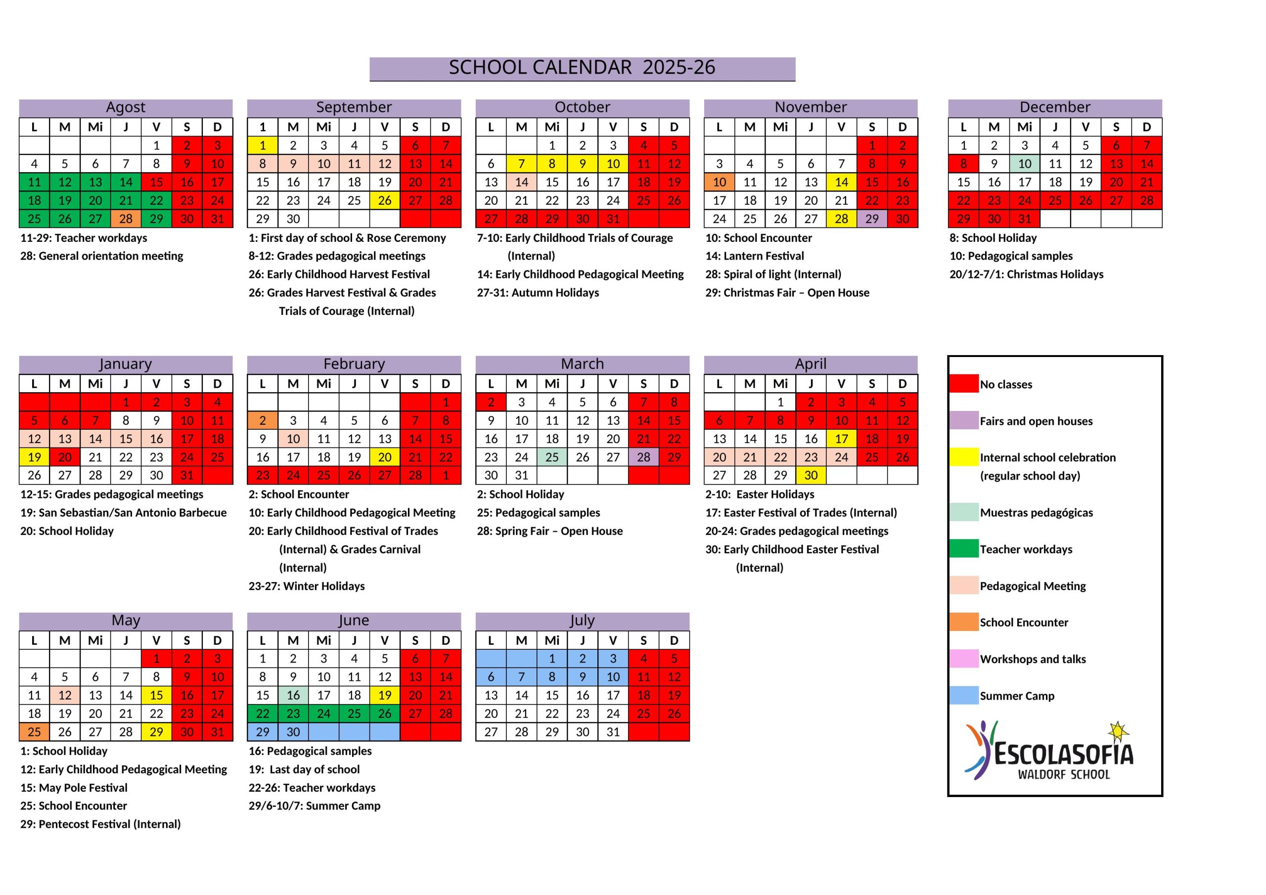 The school day is from 8:30am to 2pm. The teachers receive the students in the morning between 8:15am and 8:30am.