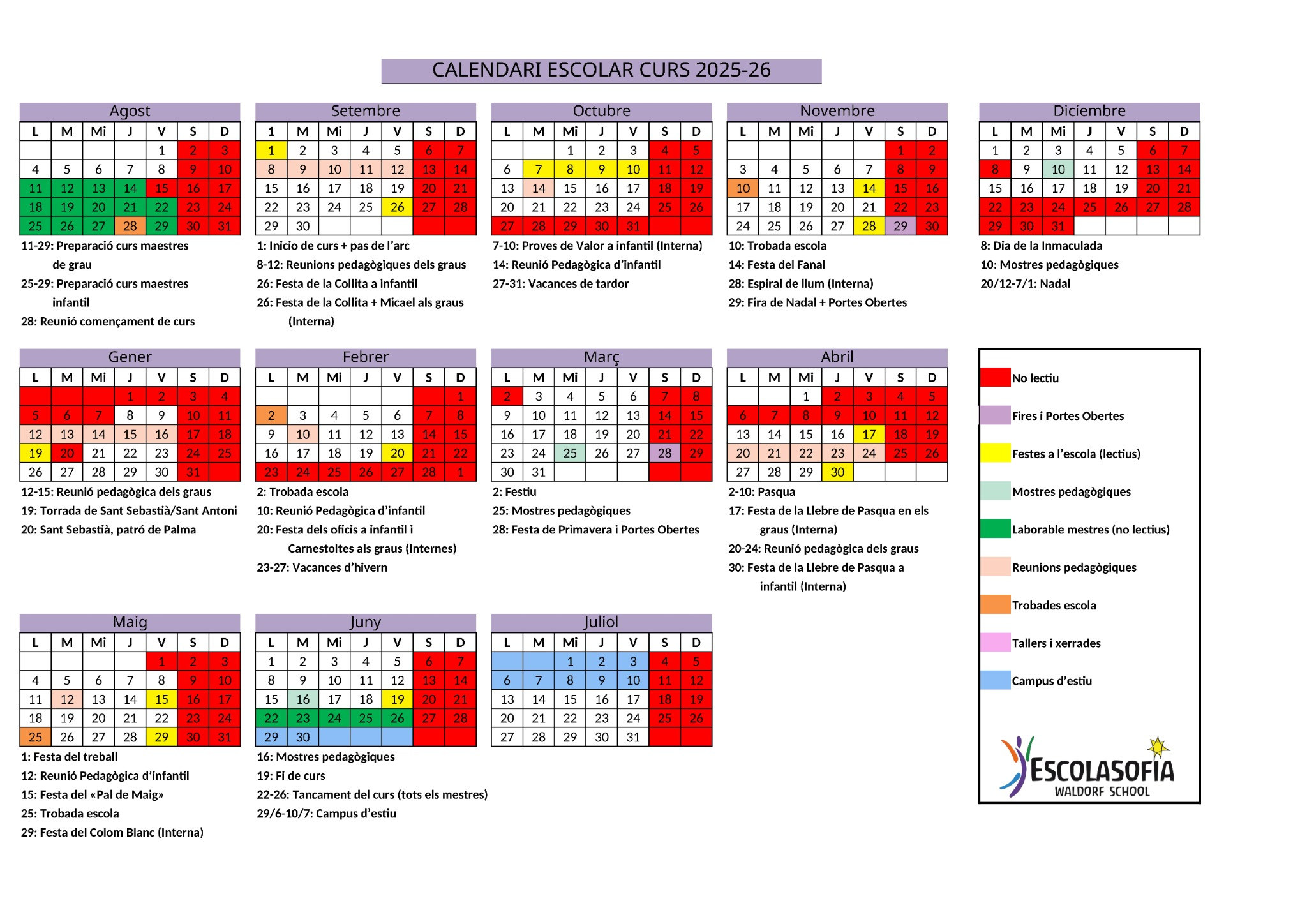 * Es acolliran els nens i nenes a partir de les 8:30. Si alguna família necessita deixar al seu fill/a abans de les 8:30, pregam es posi en contacte amb l’escola per trobar una solució.